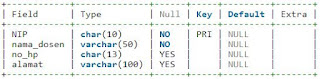mysql> CREATE TABLE daftar_dosen (NIP CHAR(10) PRIMARY KEY,